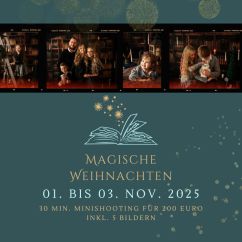 Dieses Jahr sind es weniger Weihnachtstermine als in den Vorjahren, da mein Kalender bereits als Honigschnittchen und mit den angemeldeten Babys gut gefüllt ist. Hier stelle ich euch die verschiedenen Shootings vor, samt Terminen und Link zur Buchung sowie Beispielbildern, wenn vorhanden.