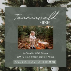 Die Minishootings im Tannenwald sind mittlerweile ein Klassiker bei mir. Wer lieber draußen ist als im Studio, ist hier richtig. Vor ganz natürlicher Kulisse im Wald in 18246 Bützow entstehen eure Weihnachtsbilder. Egal, ob als Familie, die Kinder oder als Paar oder mit Oma und Opa dabei. Damit es nicht zu stachelig wird zwischen den Bäumen, ist das Shooting für max. 8 Personen geeignet. Babys sollten mindestens 6 Monate alt sein und Vorsicht: je nach Wetter kann es ganz schön kalt sein.
