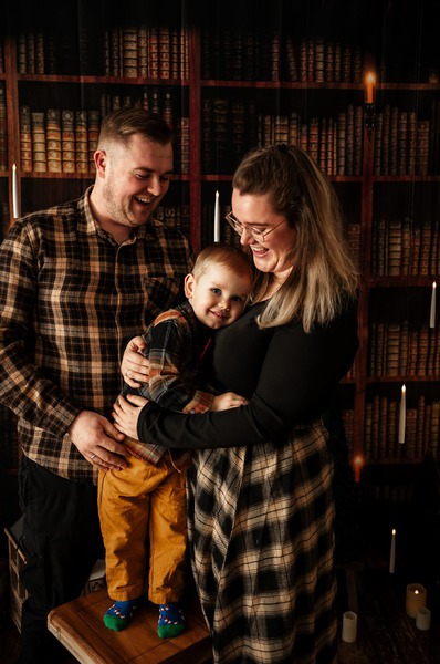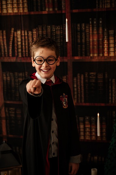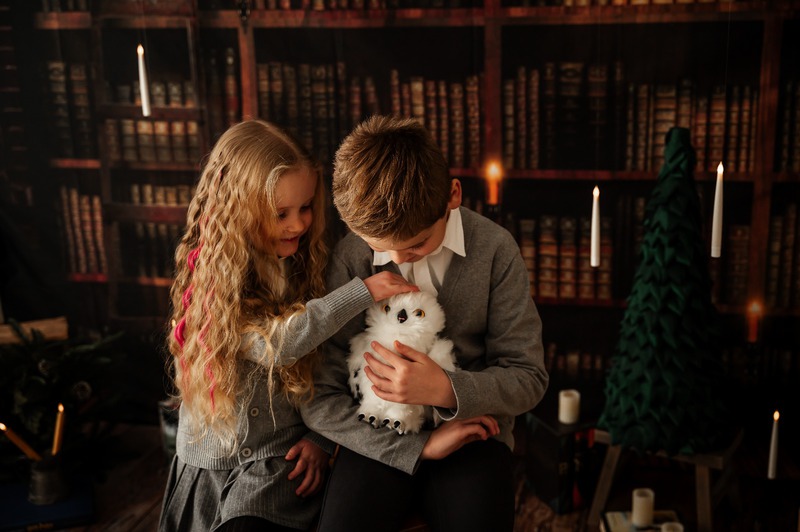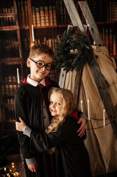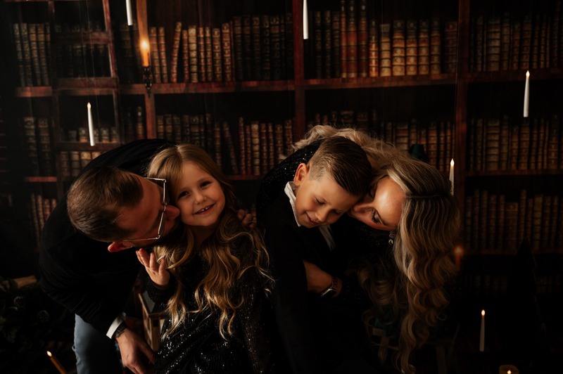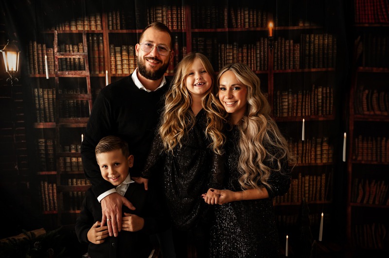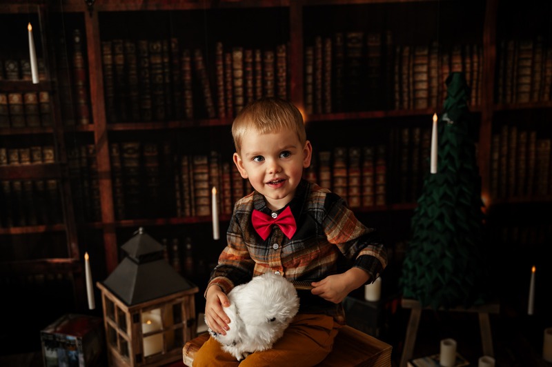 Nach so vielen Jahren habe ich an Weihnachtskulissen fast alles durch und mag es auch ungern zu weihnachtlich mit Tannenbaum und Co halten. Daher wird es dieses Jahr magisch und sehr stimmungsvoll mit den schwebenden Kerzen vor einem Bibliotheks-Hintergrund. Ich weiß, dass viele meiner Kunden Harry-Potter- bzw. Fantasy-Fans sind, aber das ist kein Muss. Beim Testen z.B. haben wir uns gegen die Harry-Potter-Häuser als Kleidungsmotto entschieden und lieber auf dunkel, elegant oder British Chic gesetzt.